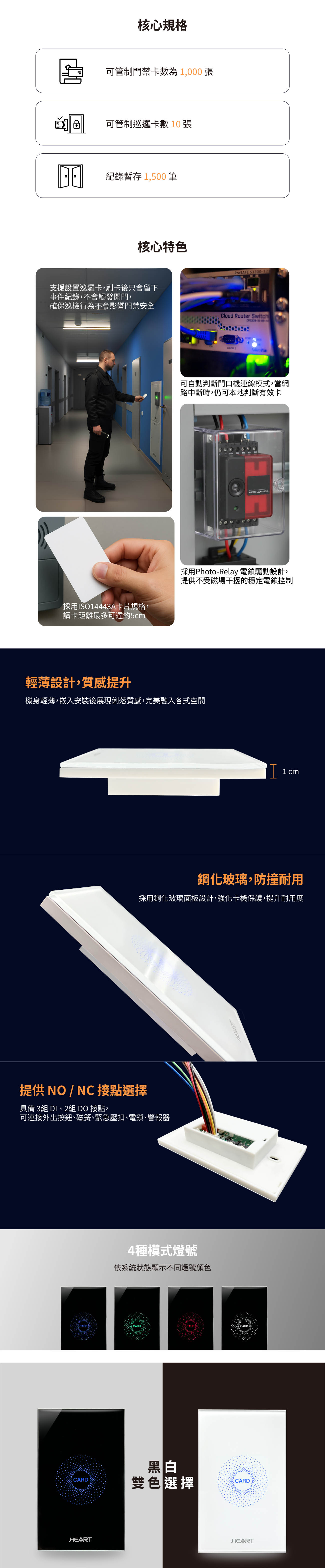 | 巡邏卡張數 | 10 張 | 巡邏卡刷卡後只記錄,不開門 |