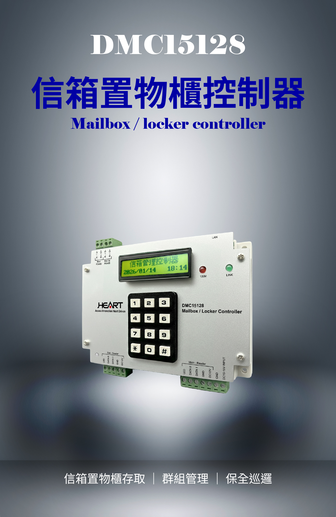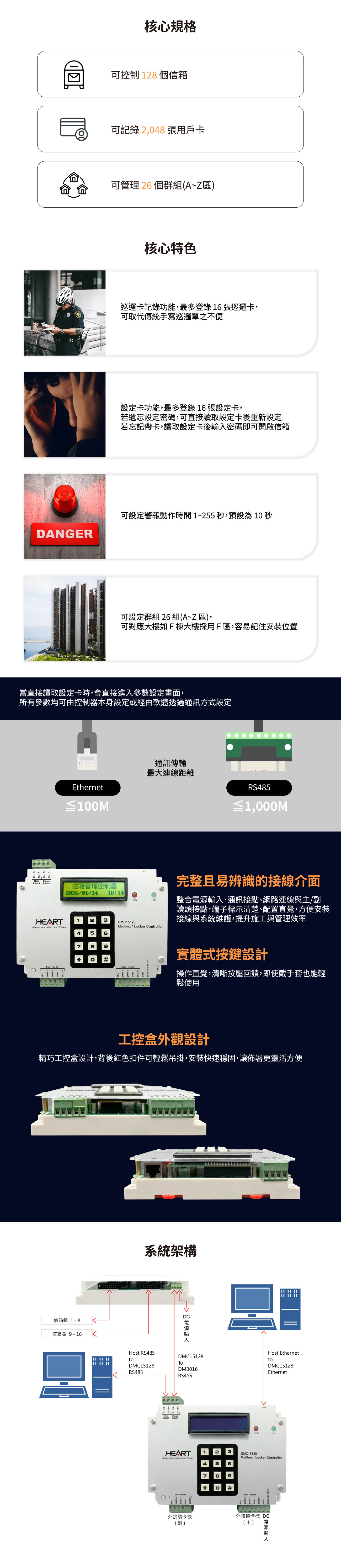 - 卓越的管控規模:單台控制器最多可控制 128 個信箱或置物櫃(需搭配 DMB016 控制板),滿足大型社區需求。