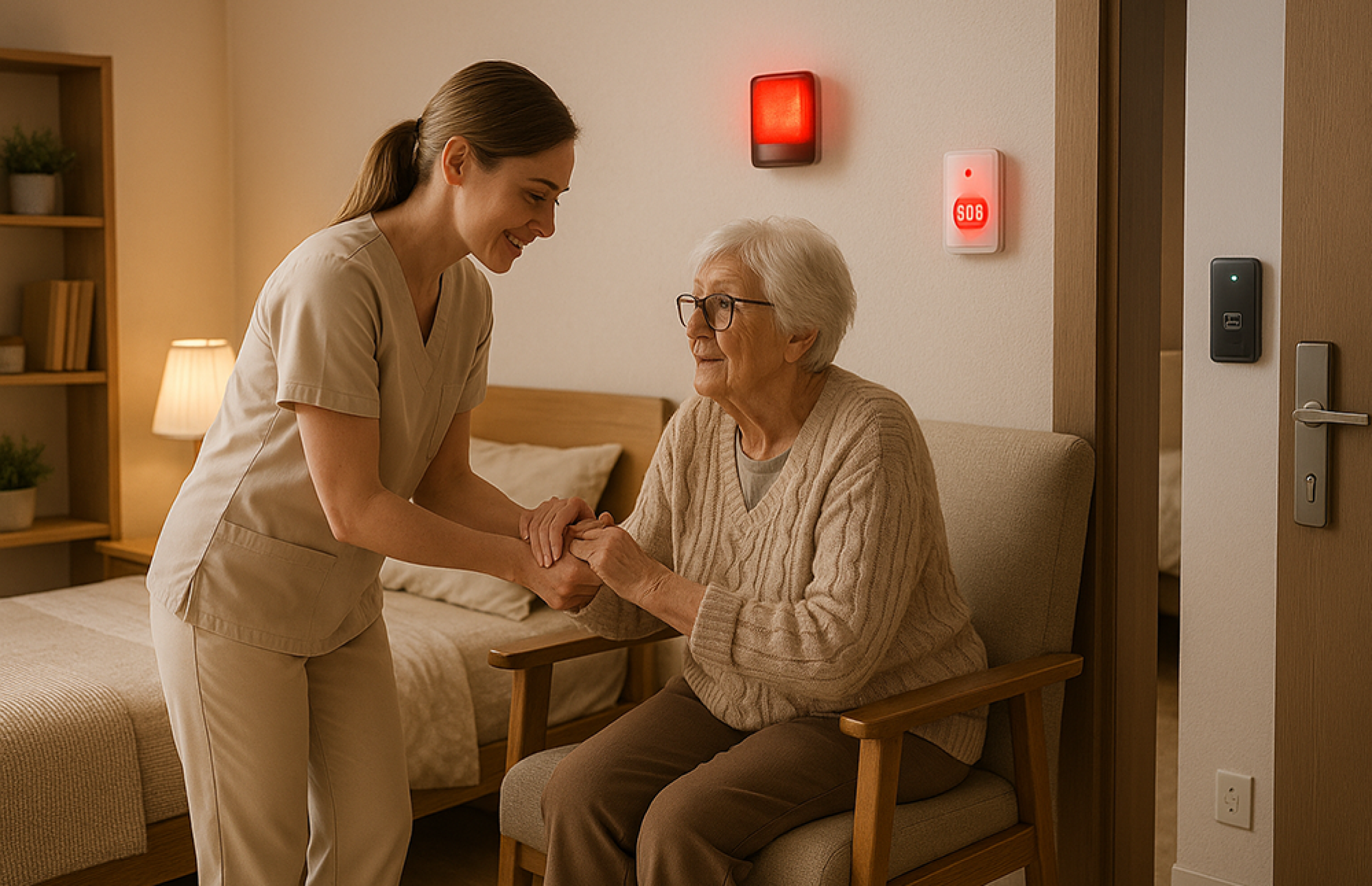 整合病房呼叫鈴或緊急按鈕,一旦觸發警報,系統可立即通知護理站或管理中心,加快救援流程