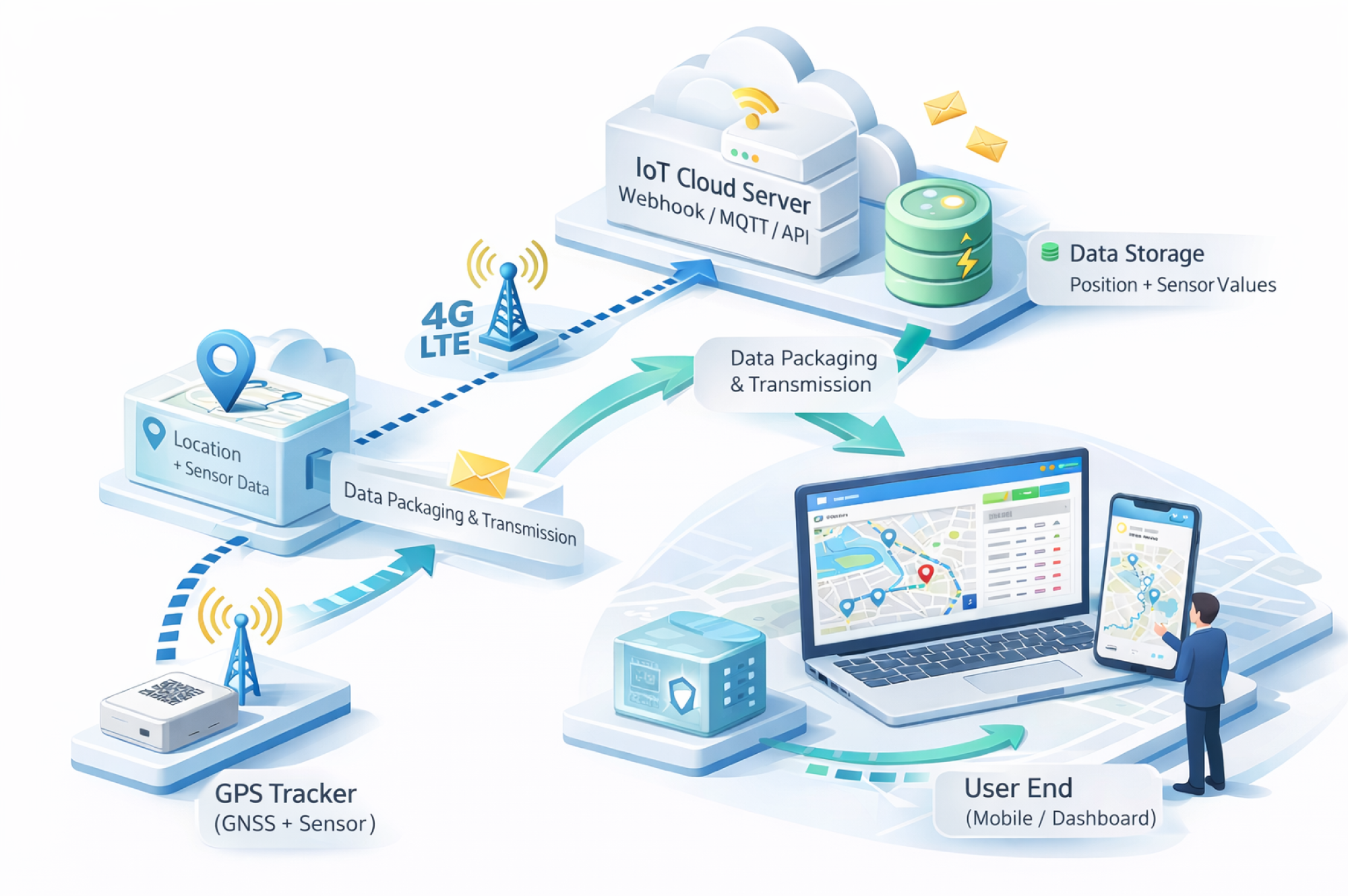 透過 GPS/GNSS 定位技術結合 IoT 通訊模組,設備可即時回報所在位置與移動軌跡,並同步上傳至雲端平台。管理者可清楚掌握資產分佈、移動路徑與使用狀況,適用於物流運輸、設備調度與高價值資產追蹤等應用