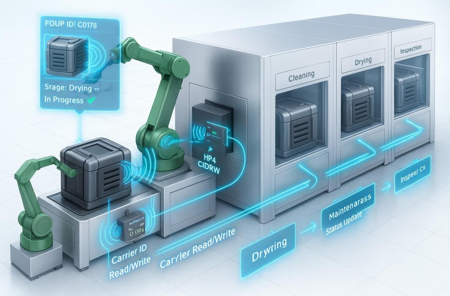 在設備端對進站載具進行身份驗證,並自動記錄製程參數,確保製程執行正確且數據可追溯。